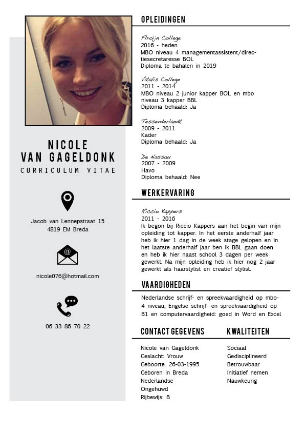 Talentcard van Nicole van Gageldonk